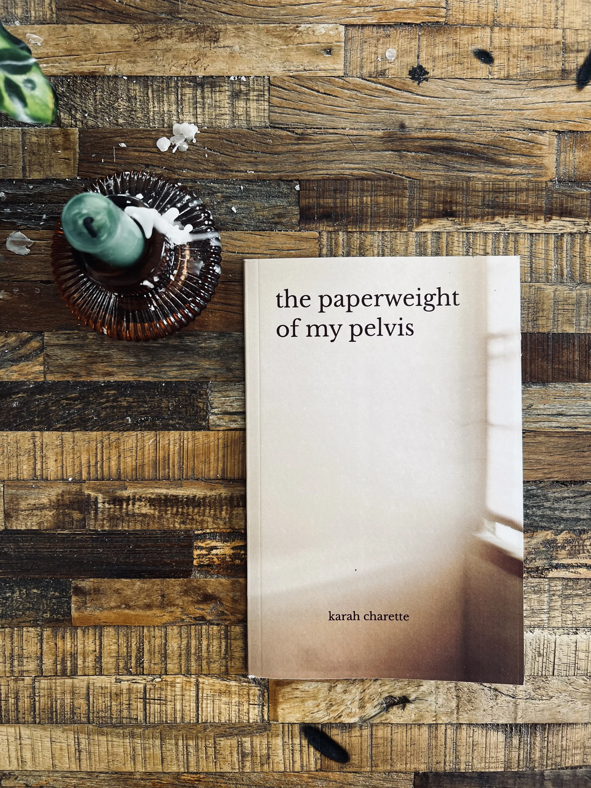 the paperweight of my pelvis is a visceral collection of poems that maps the intimate terrain of the body as both burden and offering. rooted in somatics, anatomy, and sacred embodiment, these poems listen inward — to the undulation of organs, the fluidity of flesh, and the embryonic echoes in our cells. through stillness and sensation, they ask what the body holds, what it hides, and what is it able to reveal when we pause in the question. what might be revealed for you?